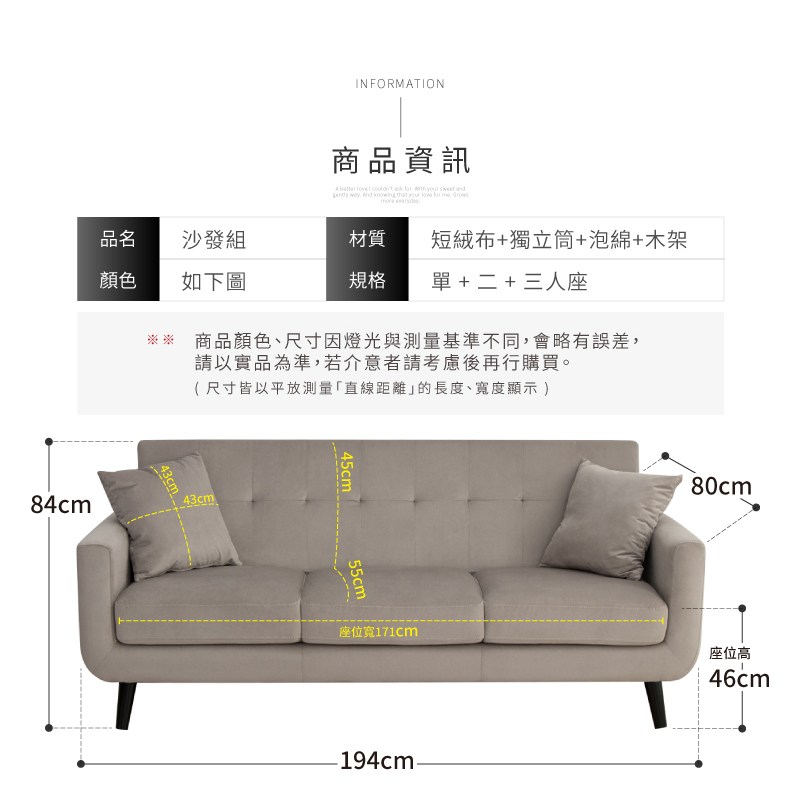 【IDEA】華夫簡約獨立筒短絨布質雙人沙發 雙人