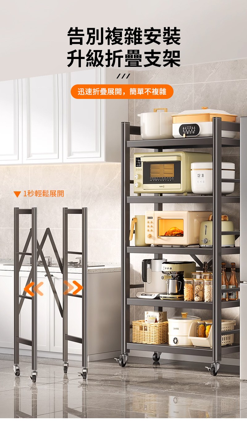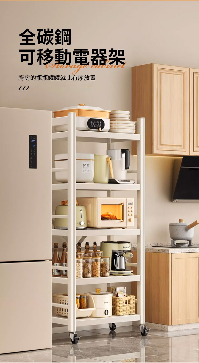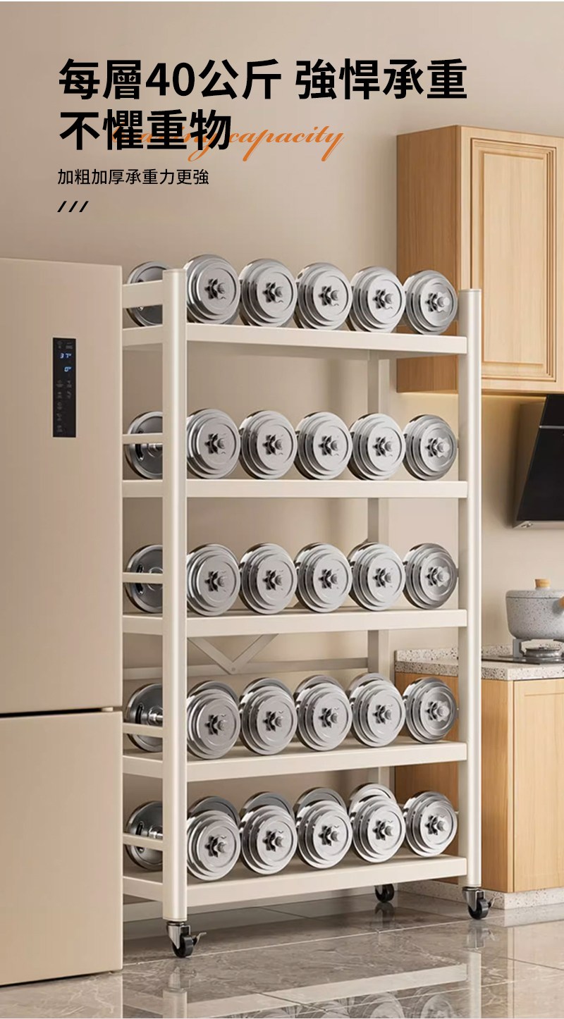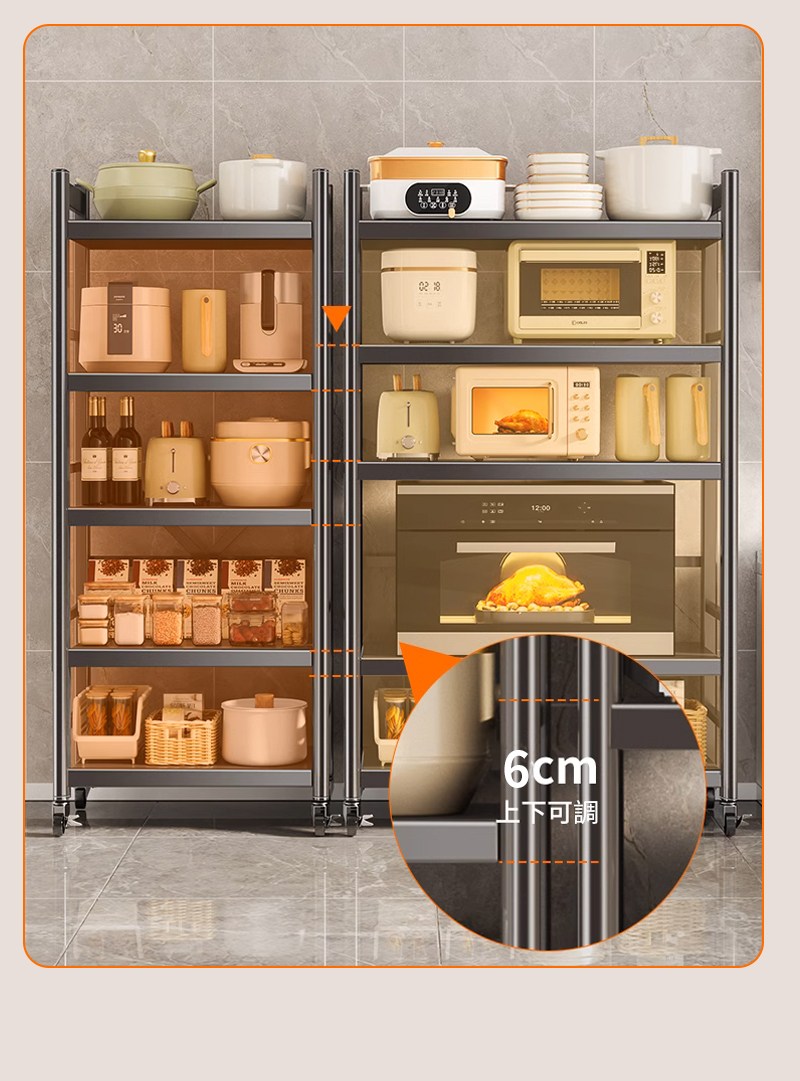 【慢慢家居】五層60寬-全碳鋼超耐重廚房可移動電器架置物架(W60xD40.5xH155cm)