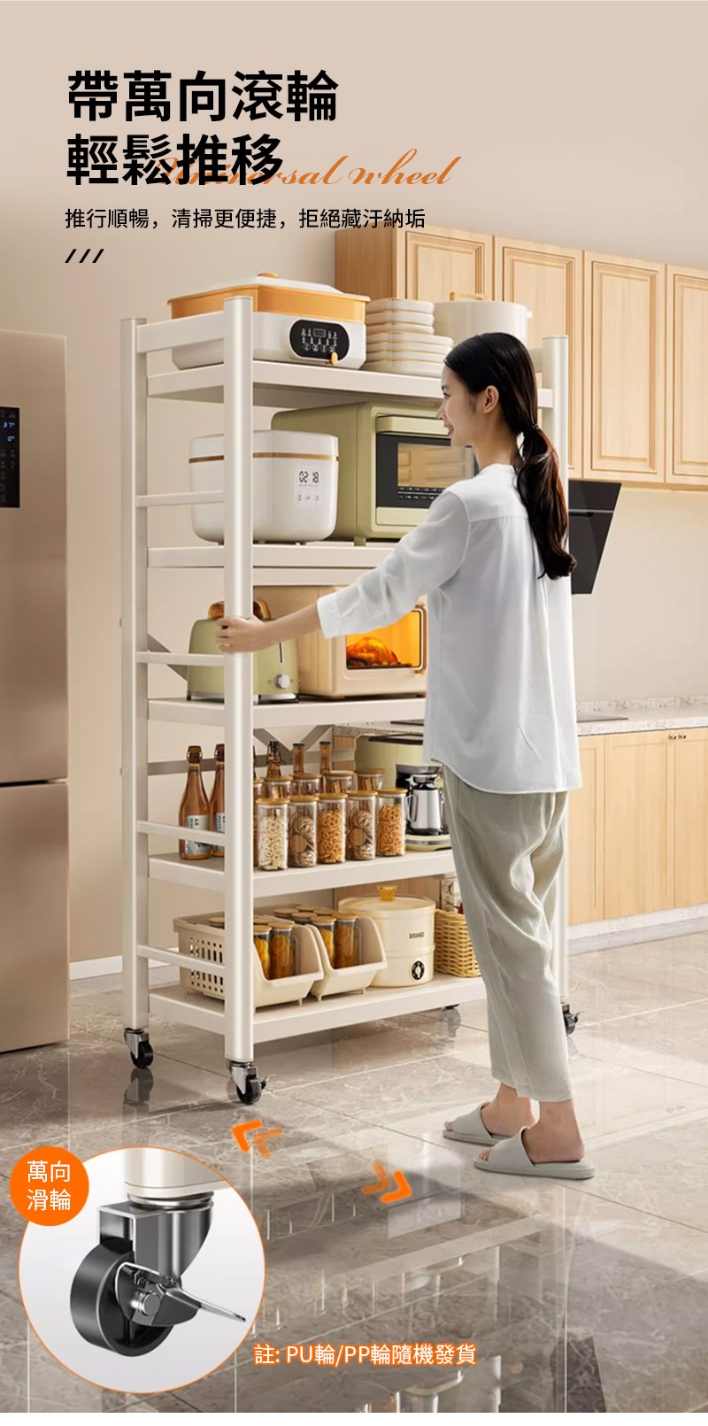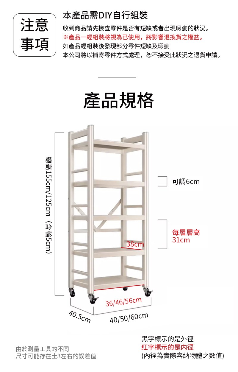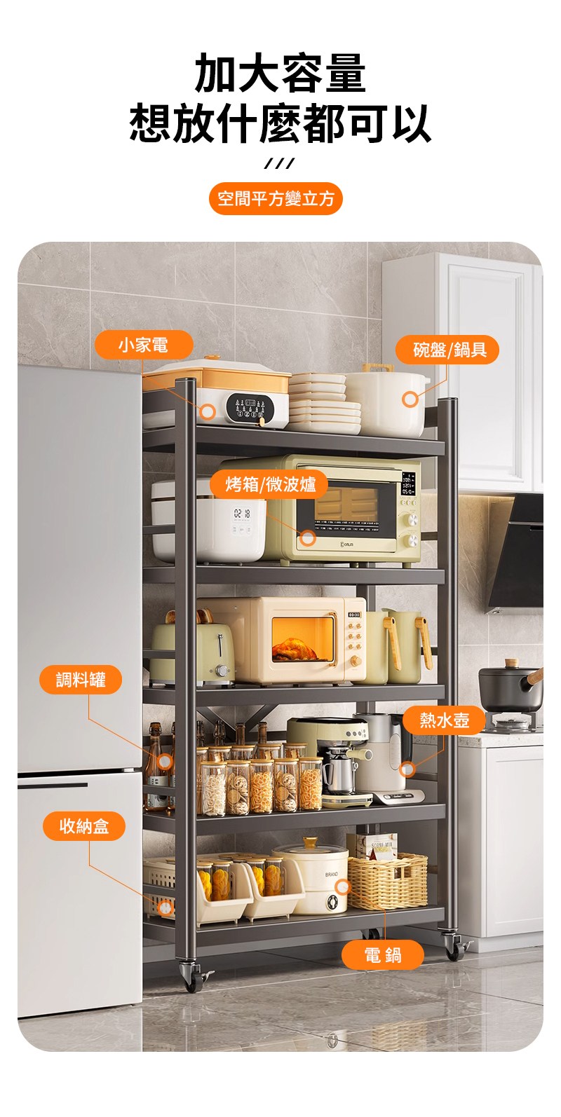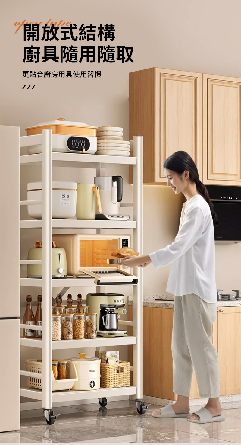 【慢慢家居】五層60寬-全碳鋼超耐重廚房可移動電器架置物架(W60xD40.5xH155cm)