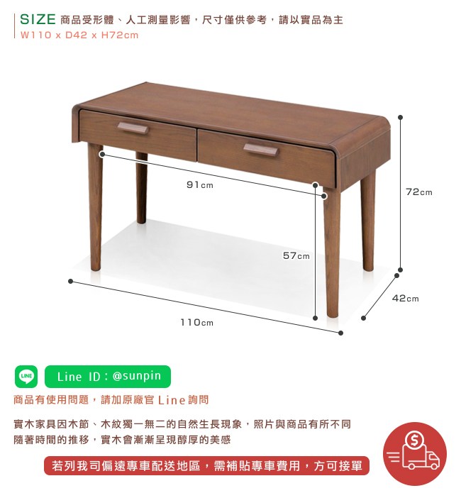 ・實木家具因木節、木紋獨一無二的自然生長現象,照片與商品有所不同。