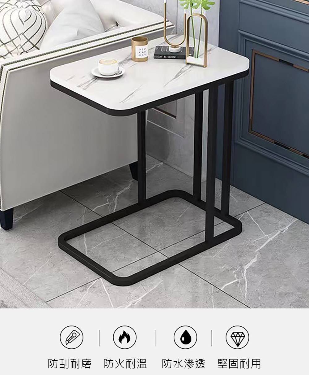 【Easy buy 居家生活】時尚風仿大理石紋單層茶几桌/邊桌黑武士