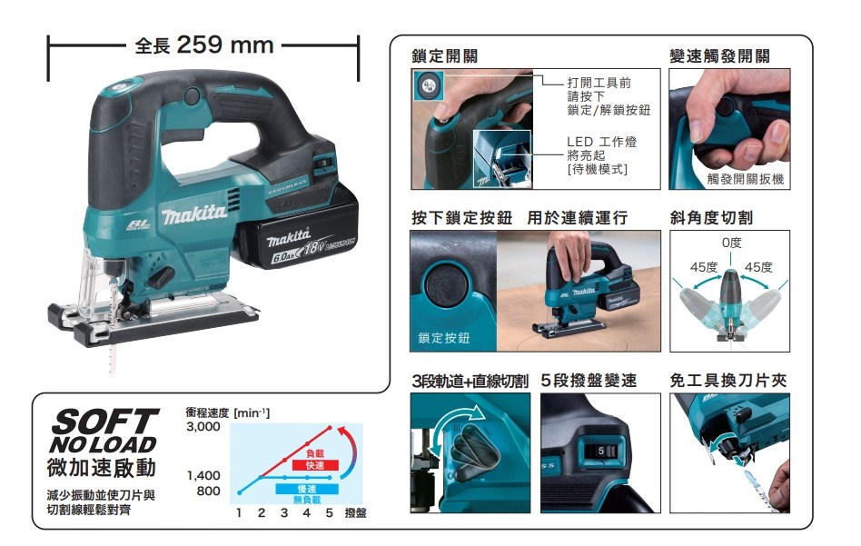 MAKITA牧田 DJV180Z 18V手提線鋸機(單主機 無電池 無充電器)