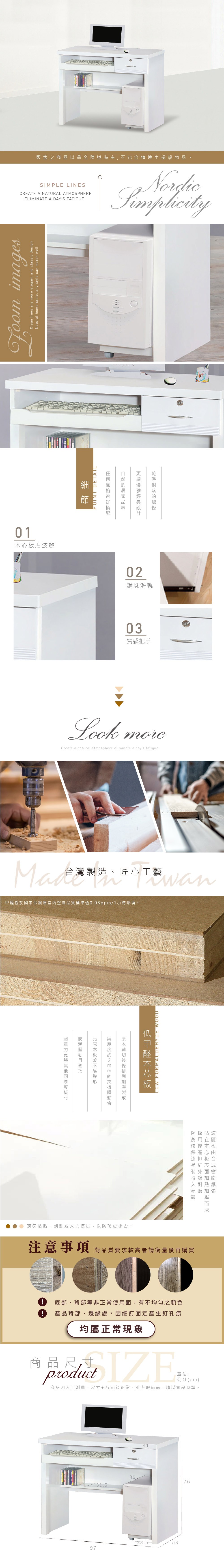 本木-維立3.2尺電腦桌(含主機架)白色