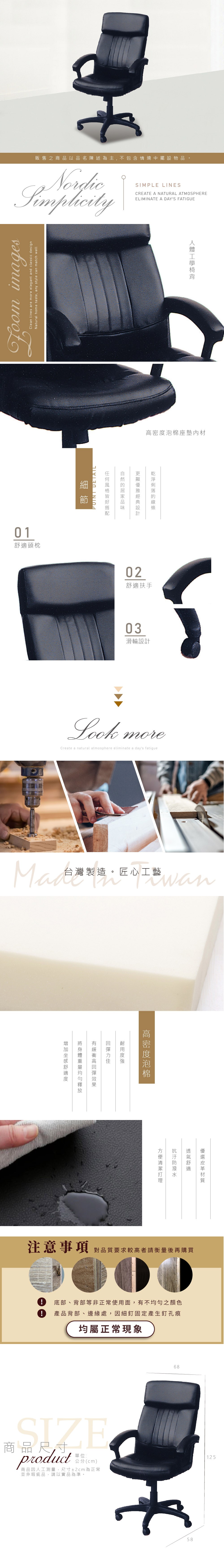 【綠活居】蒲隆 時尚黑皮革高背舒適辦公椅-61x50x115-122cm免組