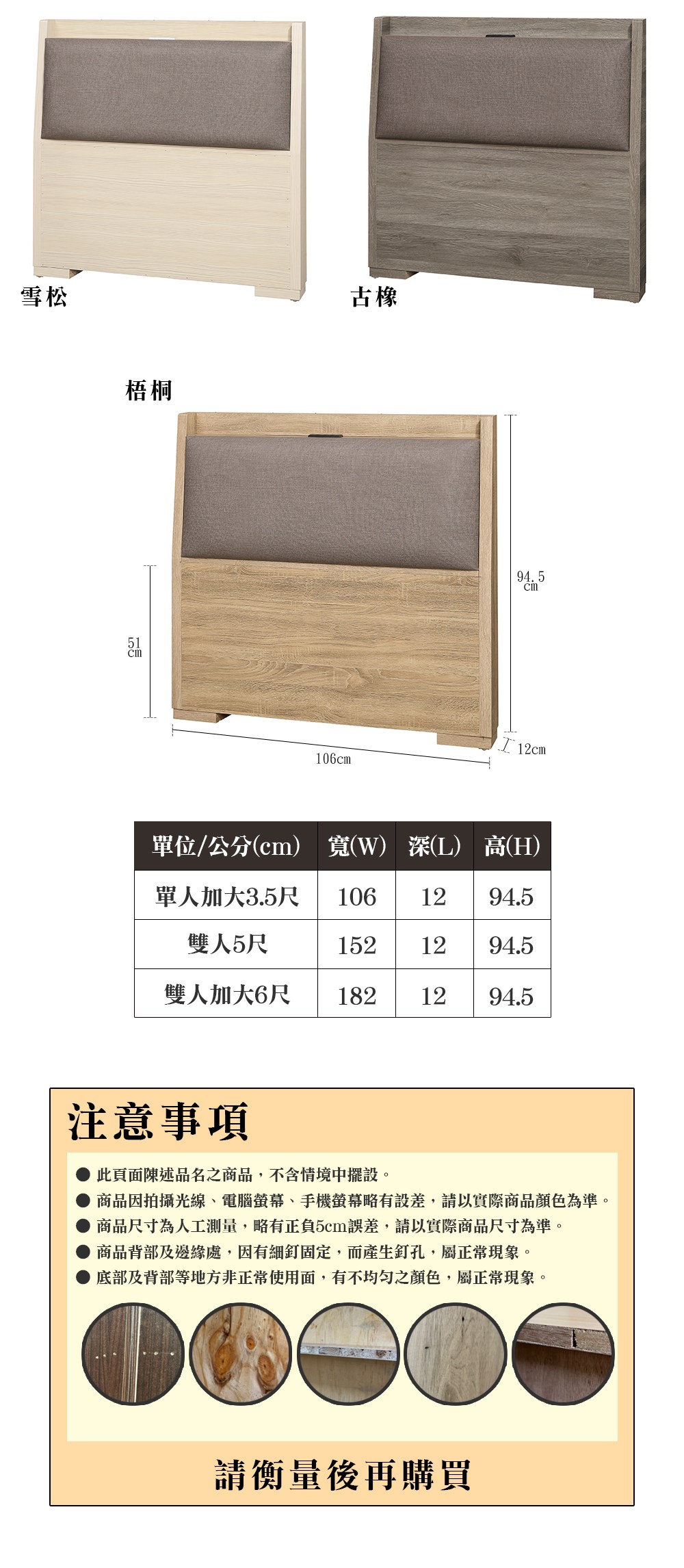 【多瓦娜】派克5尺床頭片(附插座)-三色白梧桐