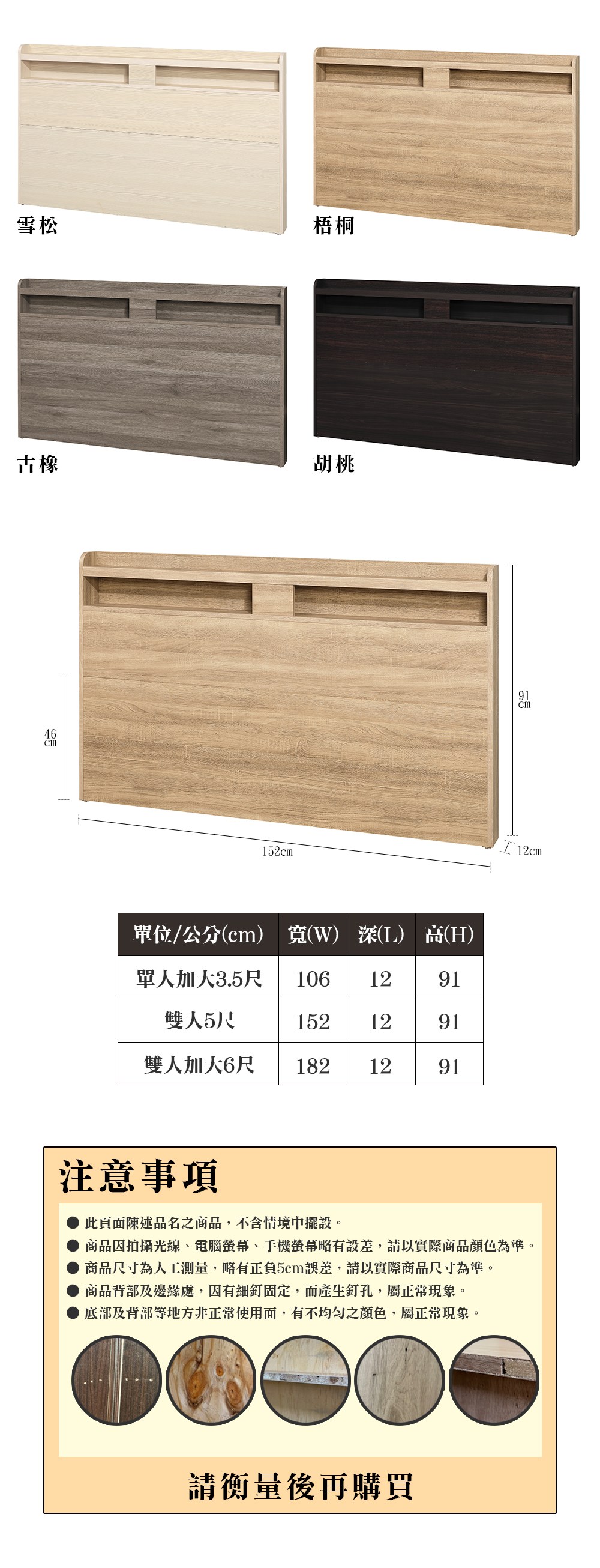 Homelike 喜家居雙人加大6尺附插座床頭片(多色可選)(2152)雪杉色