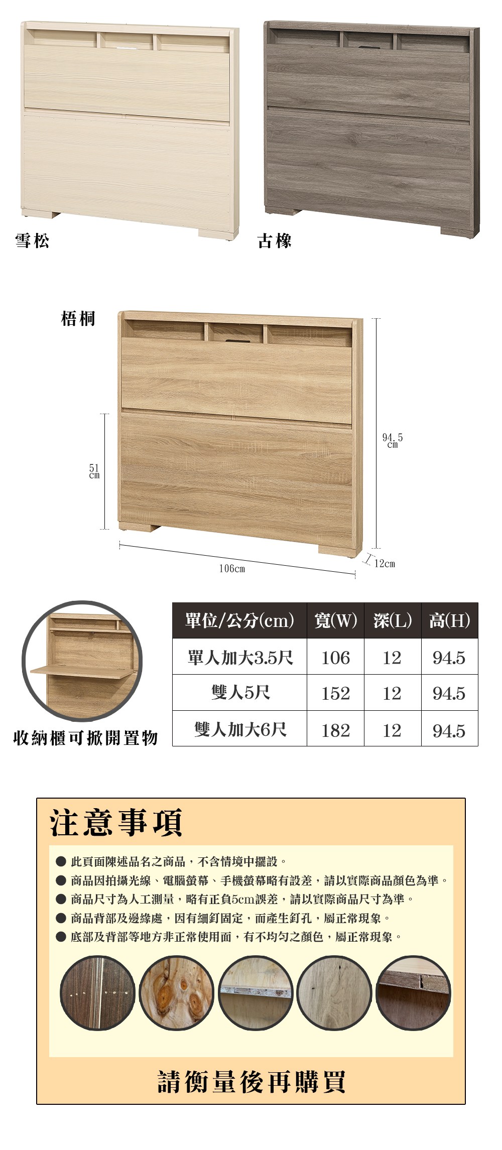 【顛覆設計】諾兒插座書架床頭箱(單大3.5尺)古橡色