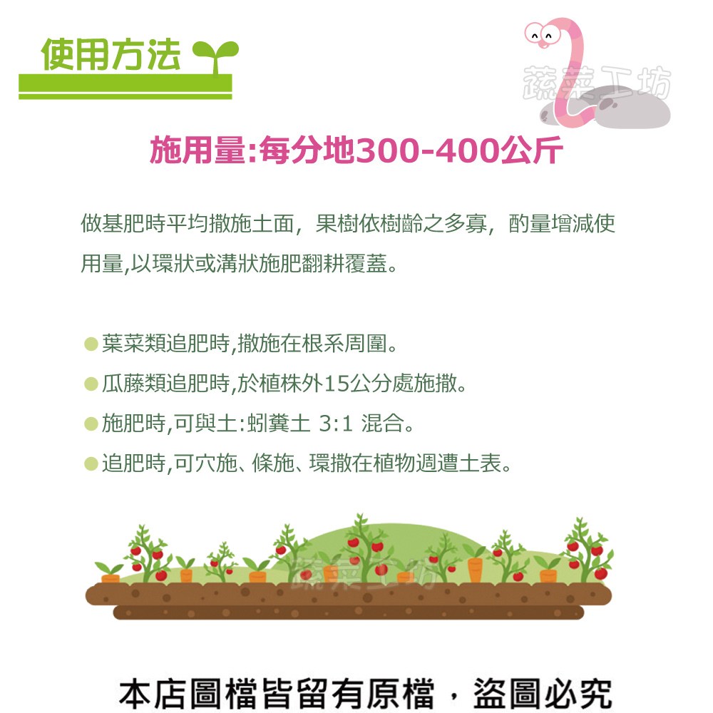 ※本產品由蚯蚓咀嚼排便而成天然小分子基礎肥,非堆肥發酵或化學製造,請安心使用。