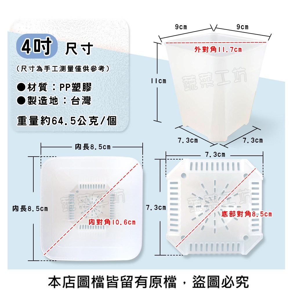 【蔬菜工坊】 透氣加高型四方盆4吋 (透明) 20入/組