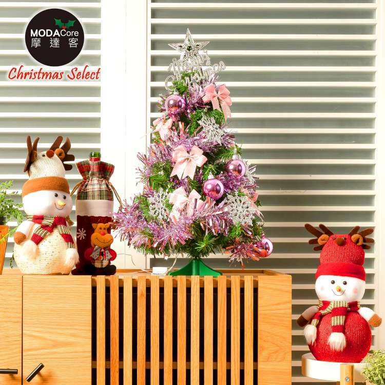 摩達客耶誕★台灣製3呎/3尺(90cm)豪華版粉紅色聖誕樹(銀紫色系配件)(不含燈)本島免運費