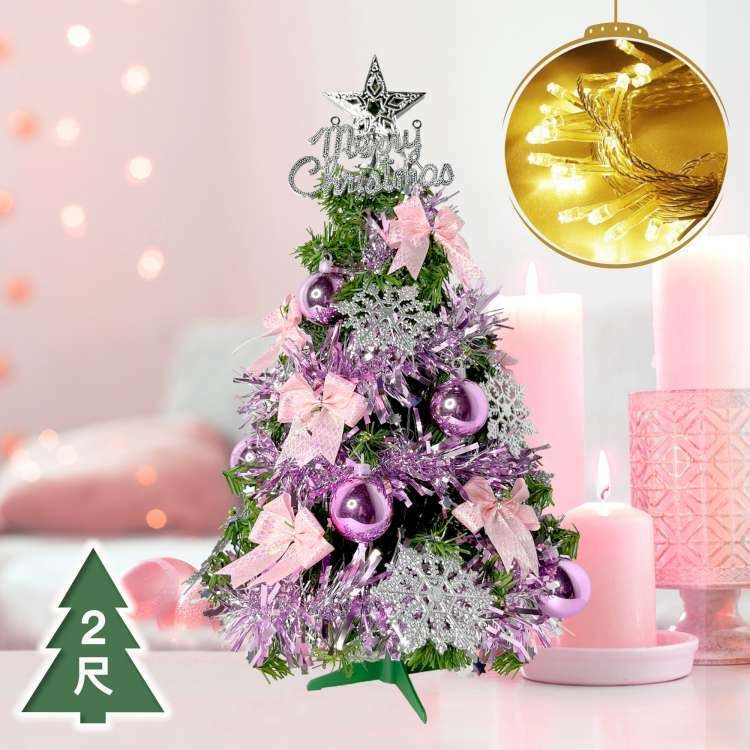 摩達客耶誕-2尺/2呎(60cm)特仕幸福型裝飾粉紅色聖誕樹 (浪漫粉紫銀雪花系全套飾品)超值組不含燈/本島免運費