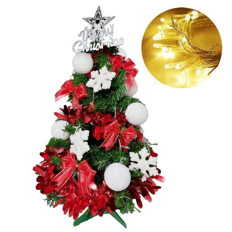 摩達客 台灣製2尺(60cm)精緻白色聖誕樹+熱情西班牙聖誕花紅金系飾品組+50燈LED燈