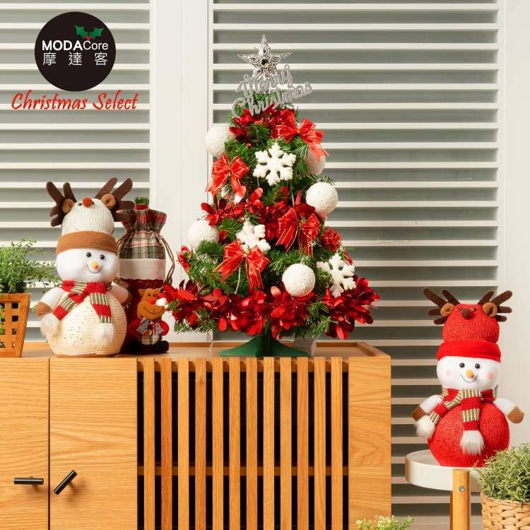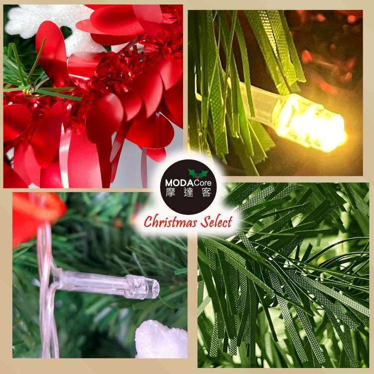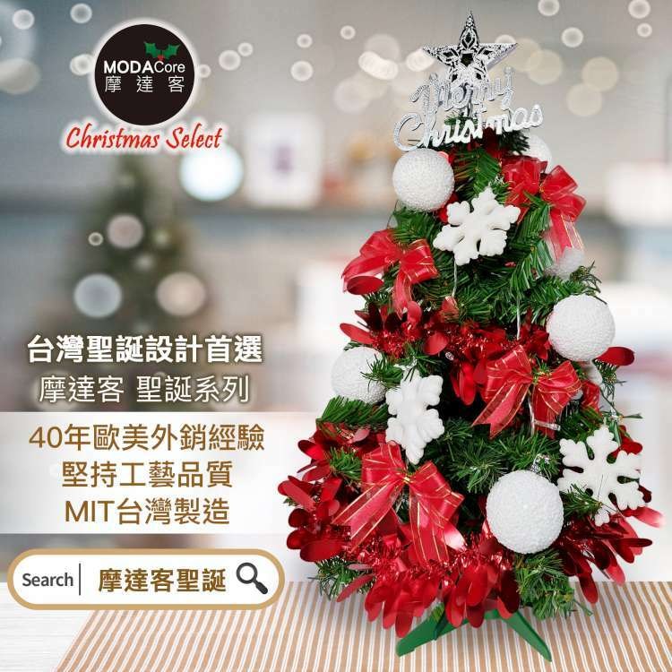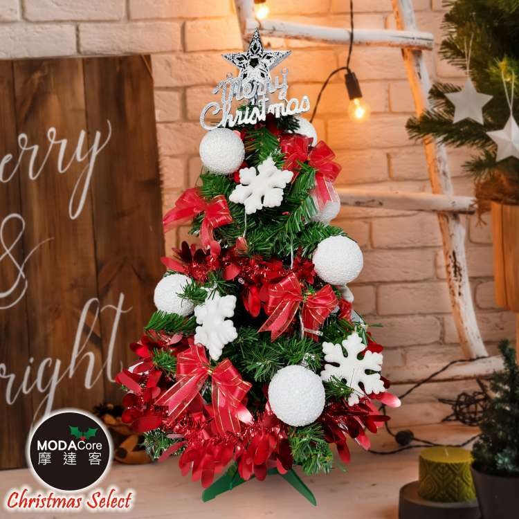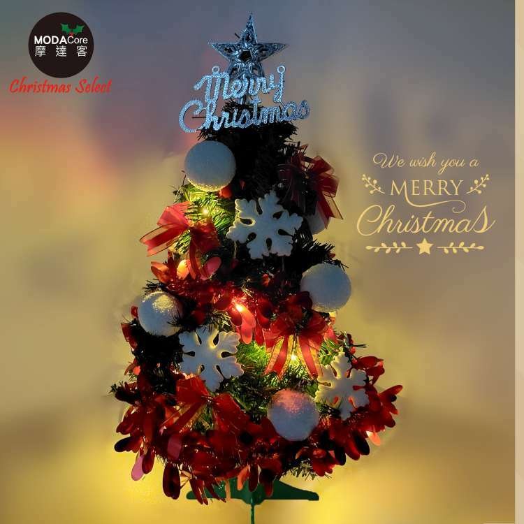 摩達客3尺豪華型綠色聖誕樹紅金色系配件50LED燈插電式燈串一串彩光
