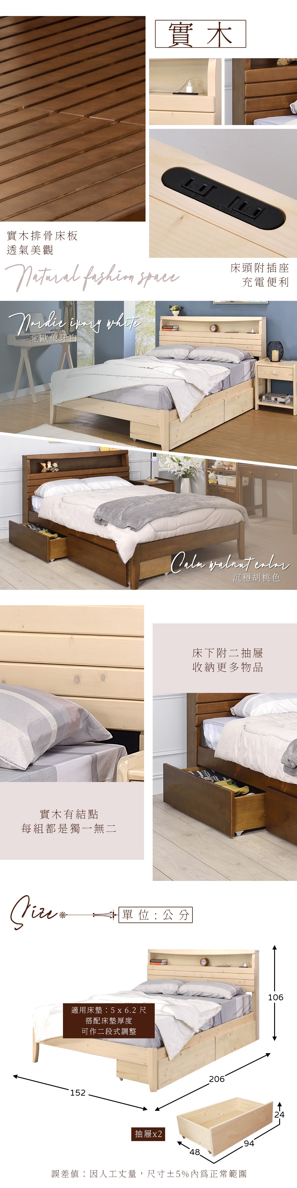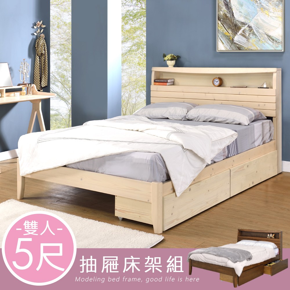 AS雅司-松樂5尺二抽收納床底-152x188x26cm--只有床底