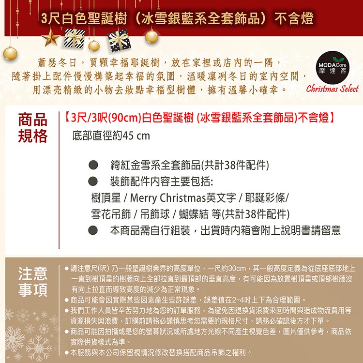 耶誕豪華版夢幻 配件組 50燈LED燈串 插電式 暖白光 附控制器 90cm 白色 + 金色
