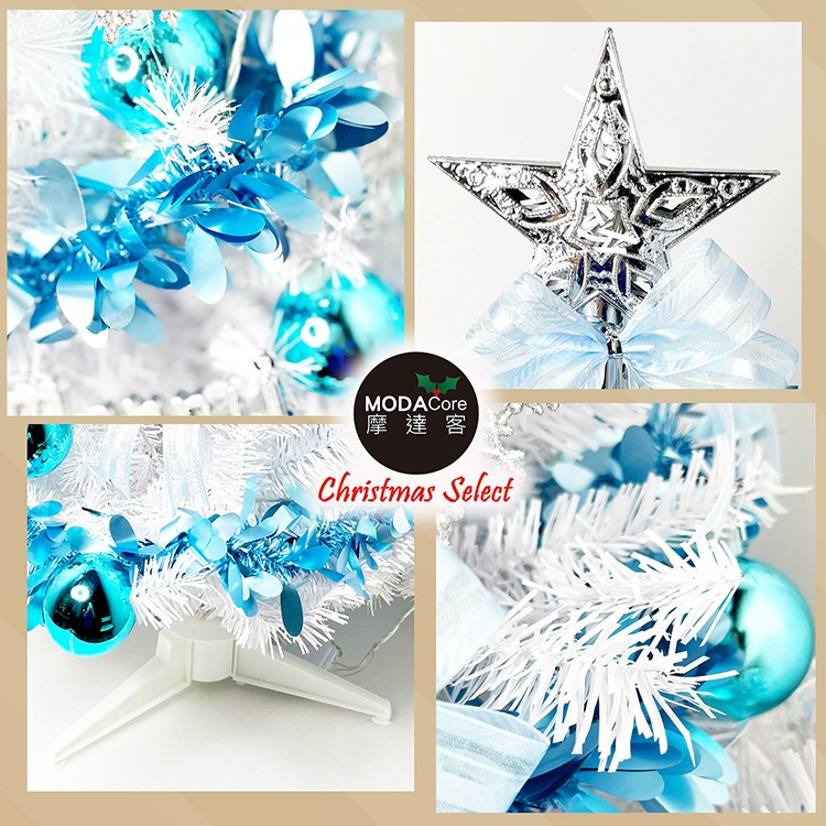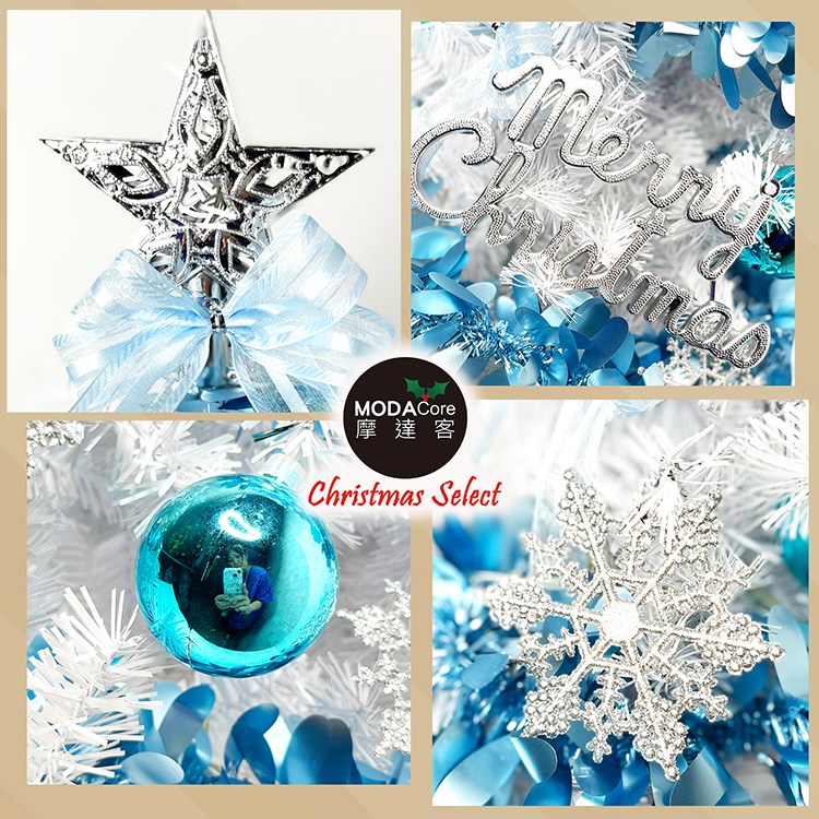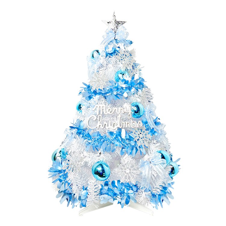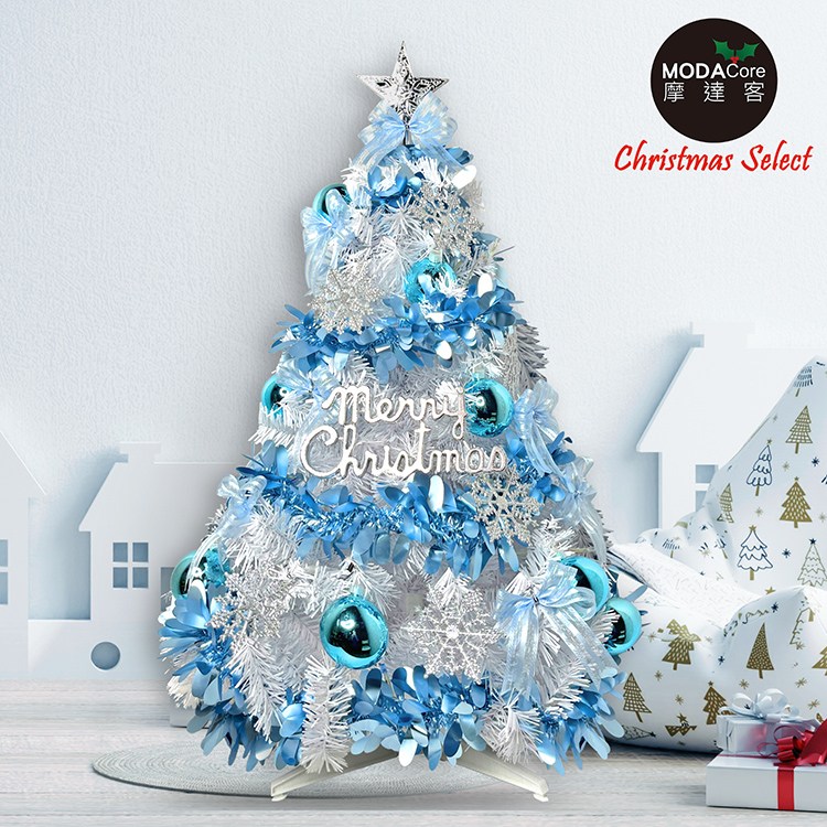 摩達客耶誕-台灣製5呎/5尺(150cm)豪華版晶透藍系聖誕樹(銀藍系配件組)+100燈LED燈藍白光2串(附IC控制器)本島免運費