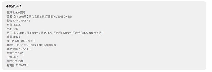 mabe 美寶 數位溫控冷藏櫃 MVS04BQNSS
