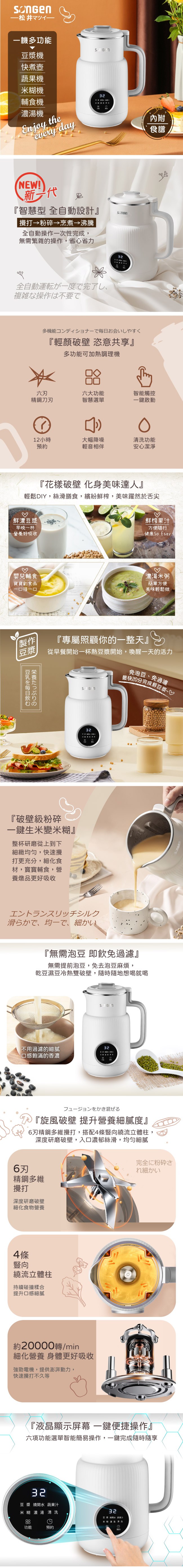 【SONGEN松井】多功能蔬果輔食冷熱調理破壁機/豆漿機/果汁機SG-331JU(W)