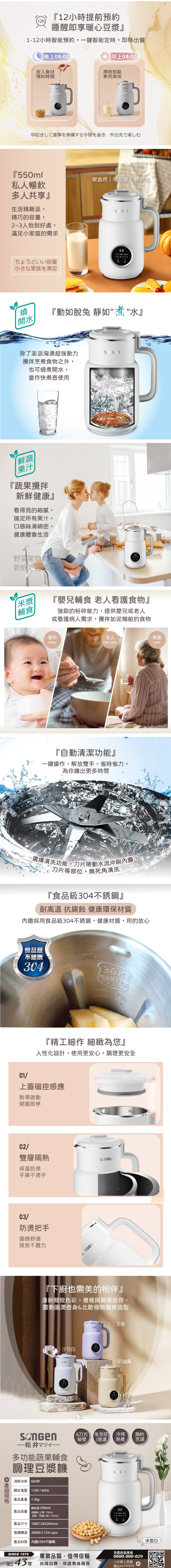 SONGEN 松井 多功能蔬果輔食冷熱破壁調理機/豆漿機/果汁機 SG-331JU丁香紫