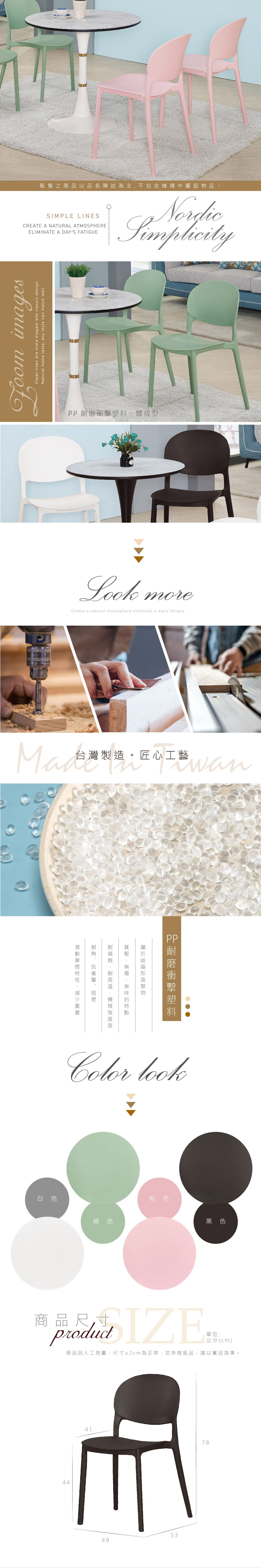 HappyLife 北歐風塑料餐椅 多色 44×41.5×81.5cm Y11475