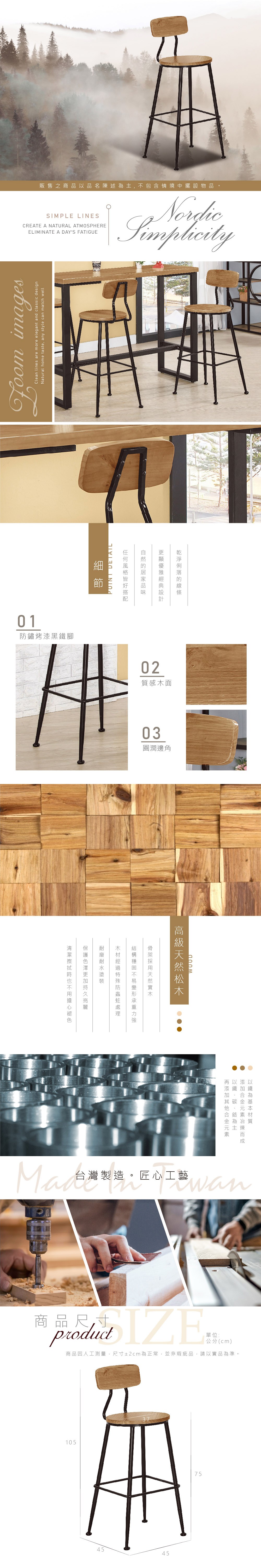 Boden-森羅工業風造型實木吧台椅/吧檯椅/休閒高腳椅/單椅-40x39x90cm