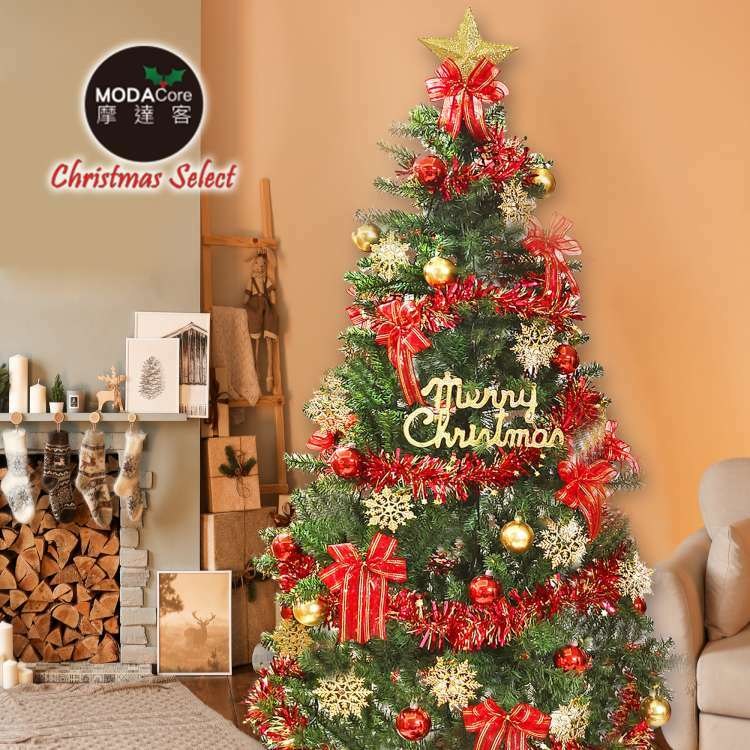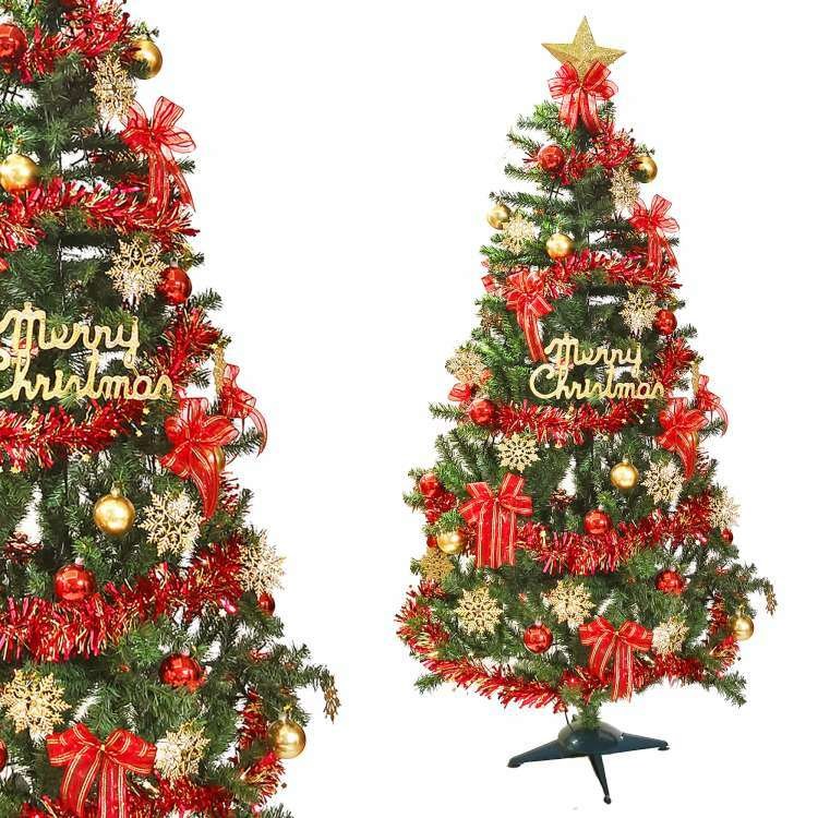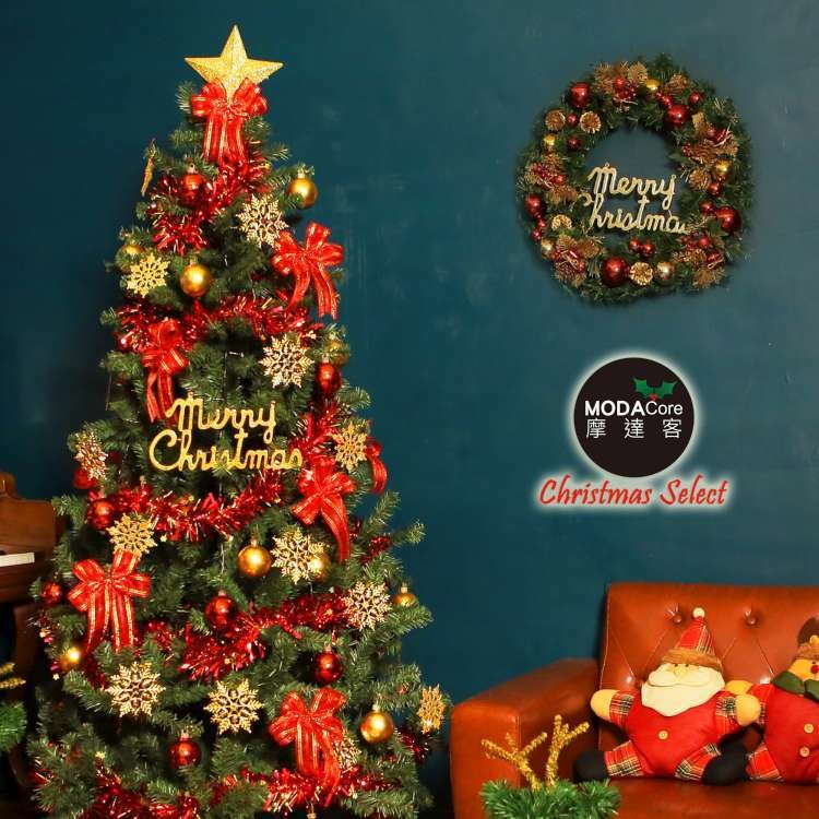 摩達客 5尺特仕幸福型裝飾綠色聖誕樹(銀白熱情紅系)含全套飾品不含燈