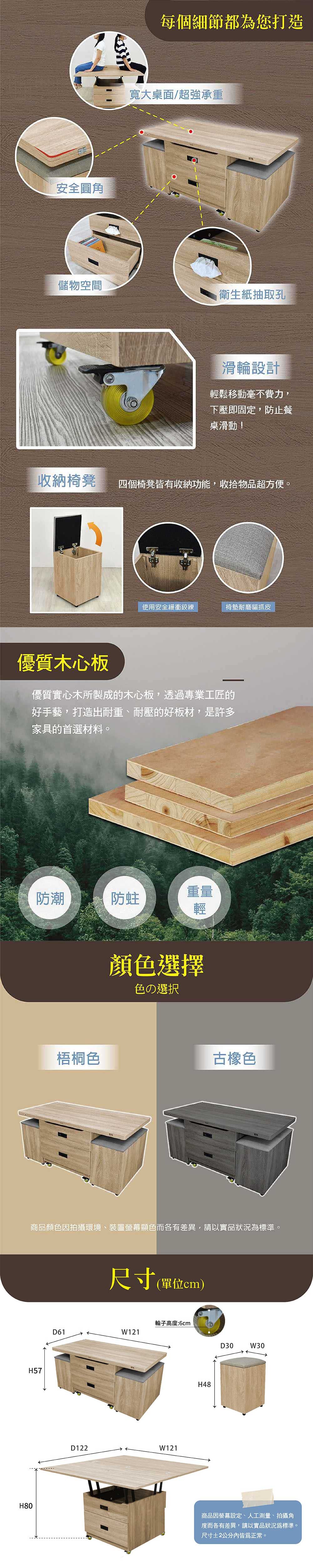 IHouse-匠人 緩衝升降茶几/餐桌 (附萬向輪)古橡