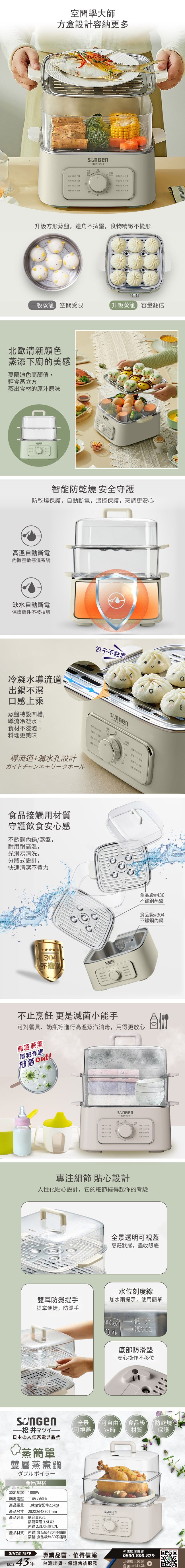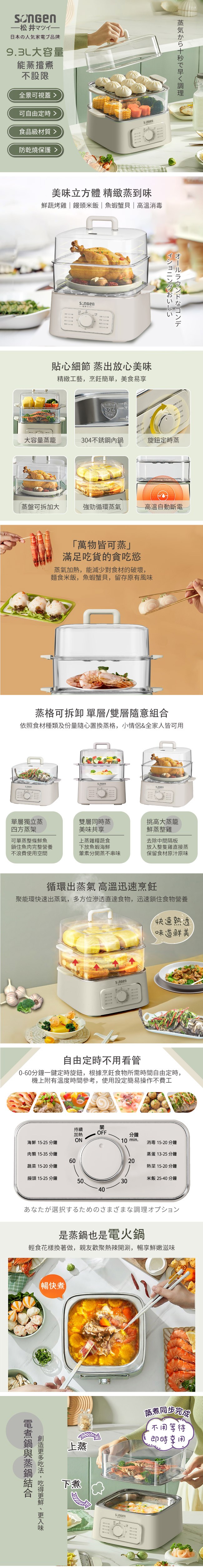 SONGEN 松井 多功能雙層智慧型蒸煮鍋 304食品級不銹鋼 上蒸下煮 24小時可預約 SG-1022MS(Q)