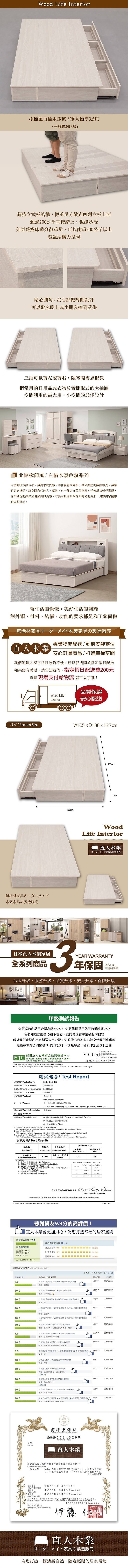WAKUHOME 瓦酷家具Molly日系無印風三抽3.5尺床箱型2件組(床頭箱+床底)-寬106.3*深201.7*高100cm