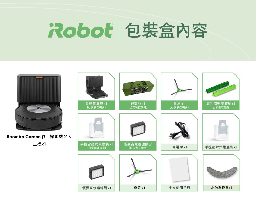 點我下載美國iRobot Roomba Combo j7+ 掃拖+避障+自動集塵掃地機器人