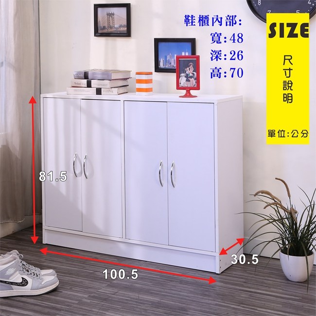 BuyJM低甲醛加寬可堆疊四門鞋櫃(寬100公分)收納櫃