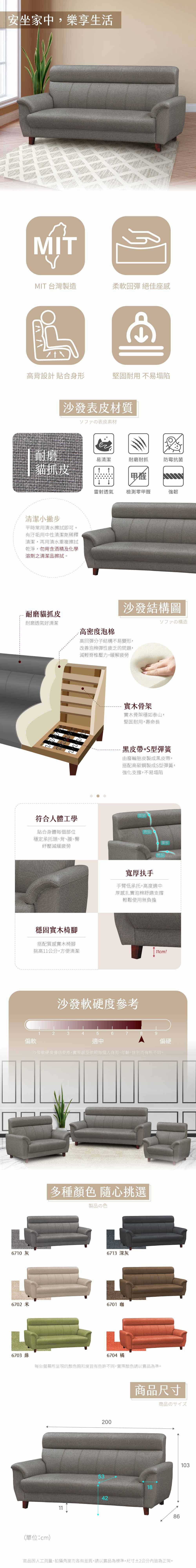 【UHO】F10-無扶手 貓抓皮三人沙發(運費另計)雙色