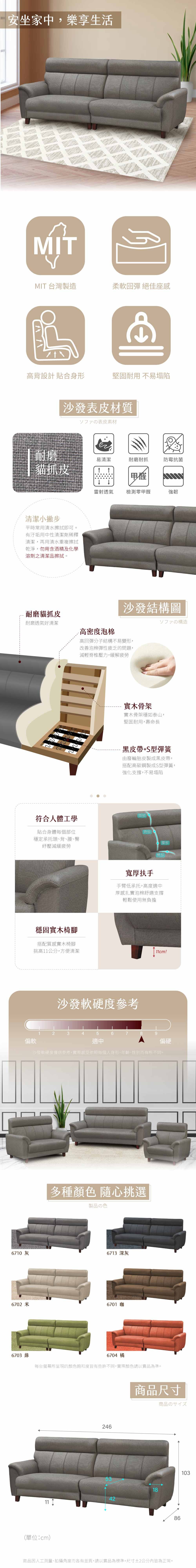 【本木】MIT台灣製 夏洛特強韌耐刮貓抓皮3人坐沙發-唐茶色#6701