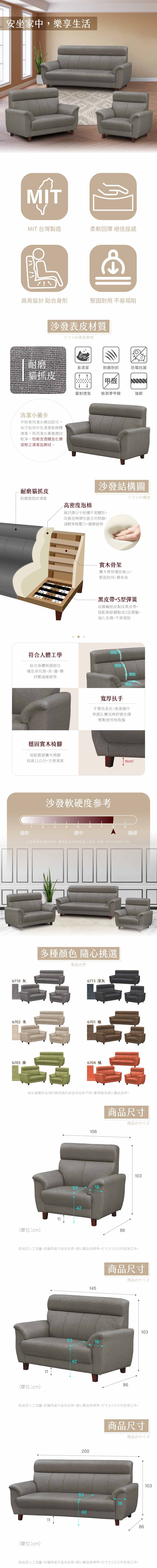 【UHO】F10-無扶手 貓抓皮三人沙發(運費另計)雙色