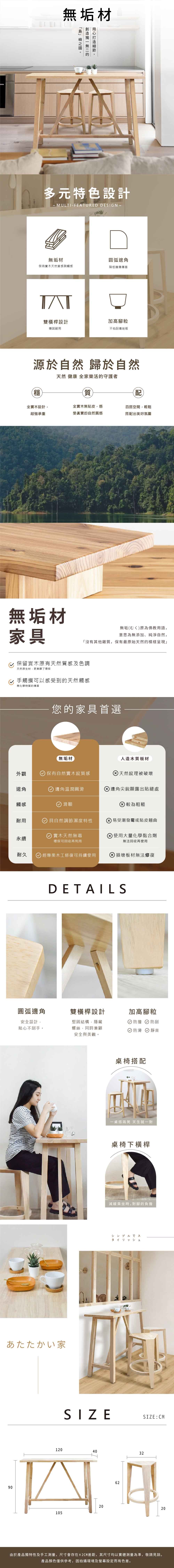 IHouse-日式實木1桌2椅 餐桌椅組/吧檯組合/中島餐廳組