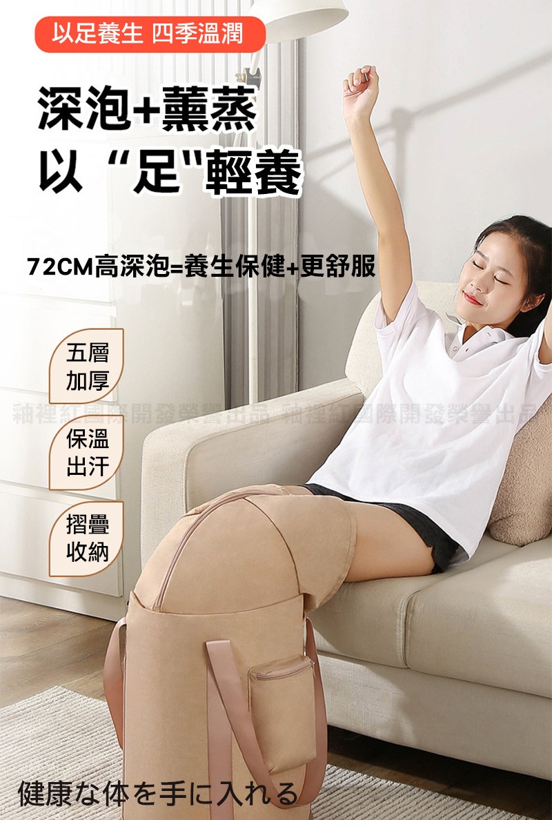 點我下載【媽媽咪呀】免插電高桶身全包覆薰蒸泡腳桶/折疊保溫泡腳袋(2入)奶茶棕