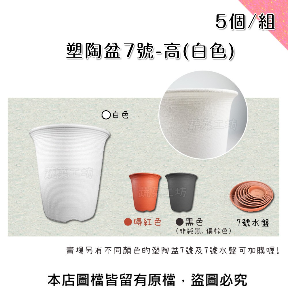 【蔬菜工坊】塑陶盆7號-高(白色) 5個/組