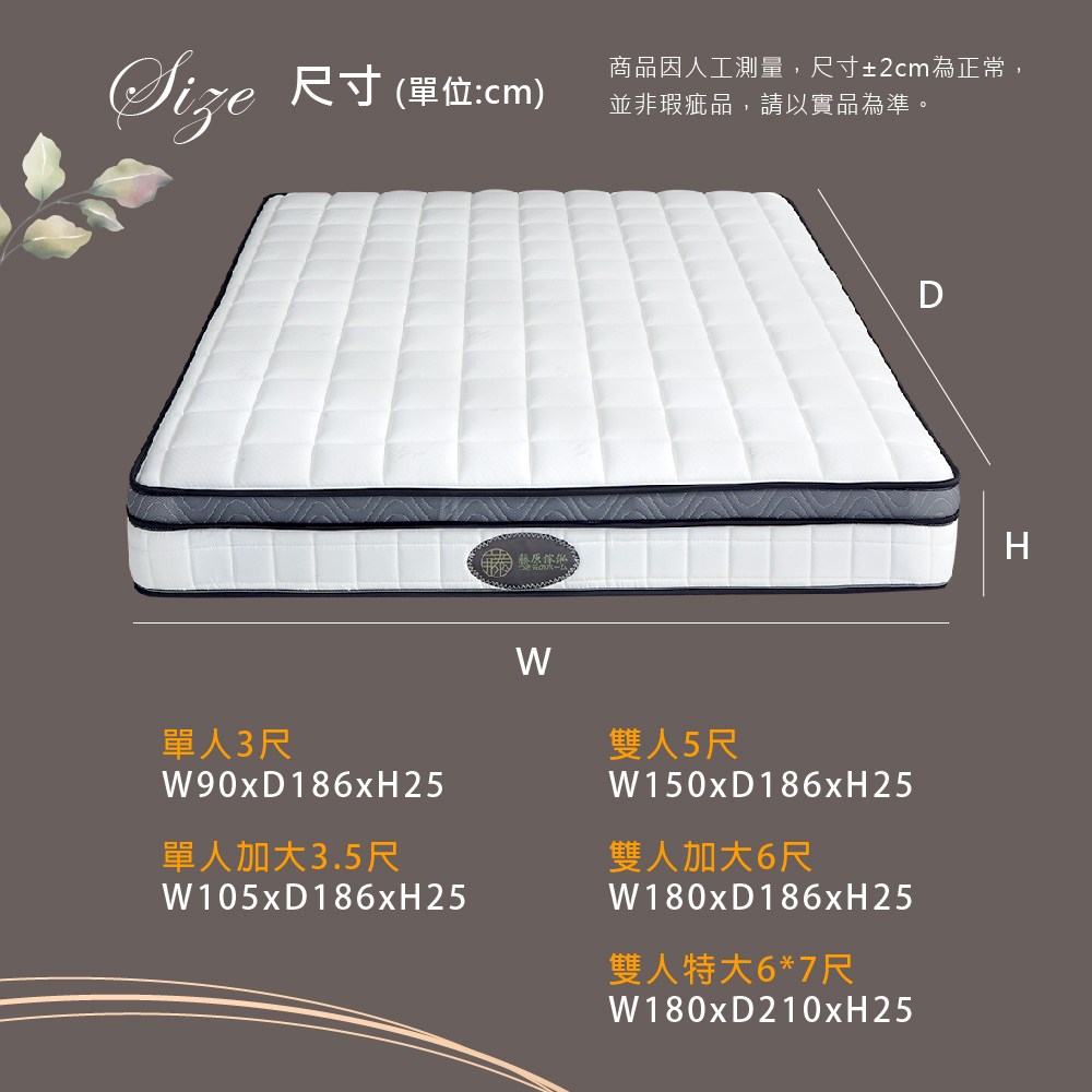 【藤原傢俬】防螨抗菌豆腐蜂巢式獨立筒床墊雙人特大(6X7尺)3H-3