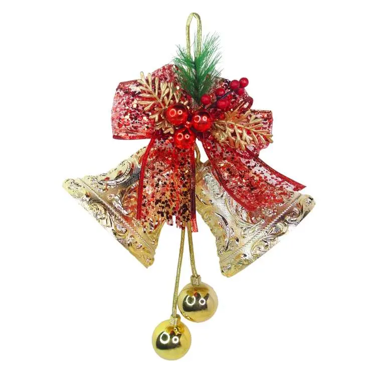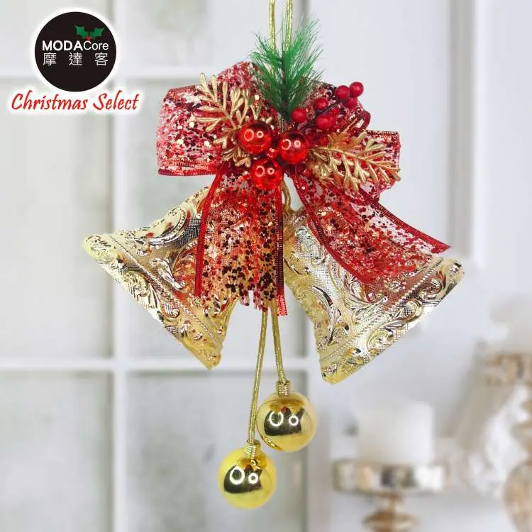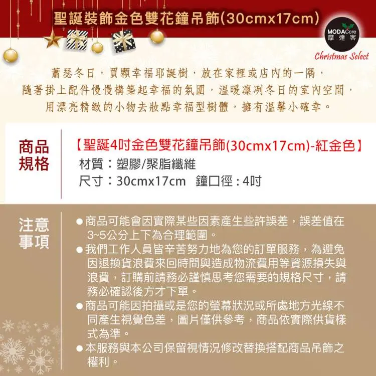 【預購】摩達客-聖誕3吋裝飾金色雙花鐘吊飾(紅金系)(下單後5個工作日出貨)_廠商直送