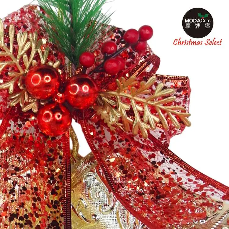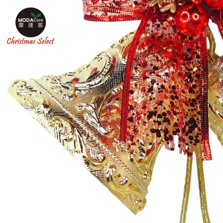 摩達客-聖誕6吋雙花鐘吊飾-紅金色