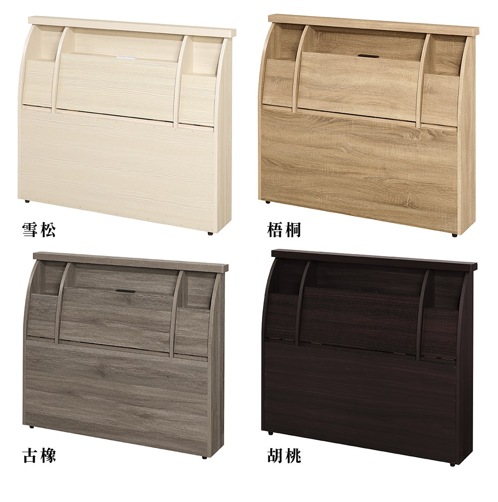 【多瓦娜】派克5尺床頭片(附插座)-三色白梧桐