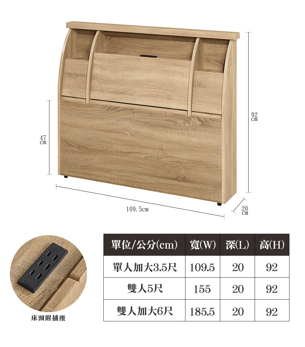 【顛覆設計】二件組 晶雅插座床頭片+加高床底(雙人5尺)梧桐色