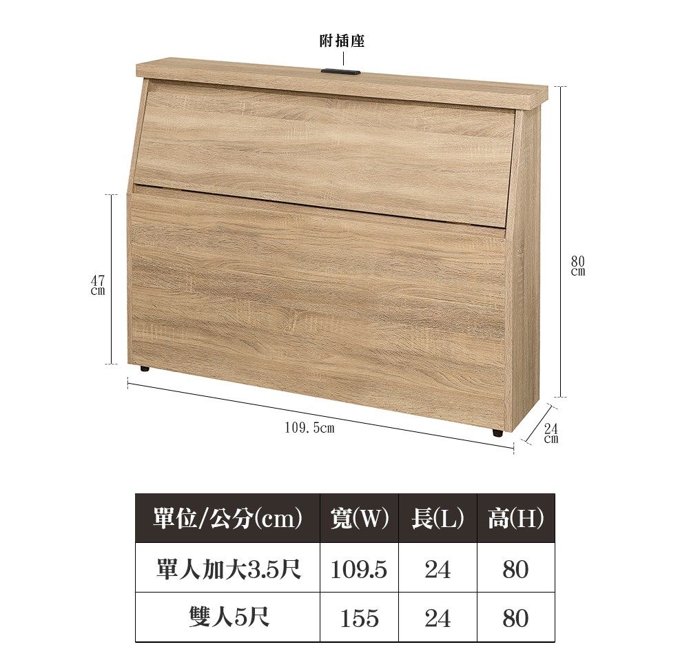 【KIKY】米月可充電收納二件床組 單人加大3.5尺(床頭箱+六分床底)雪松色