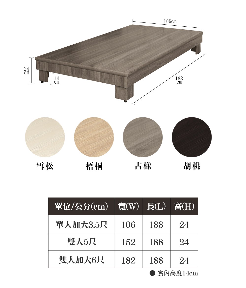 【顛覆設計】簡約加高六分板床底(雙大6尺)雪松色