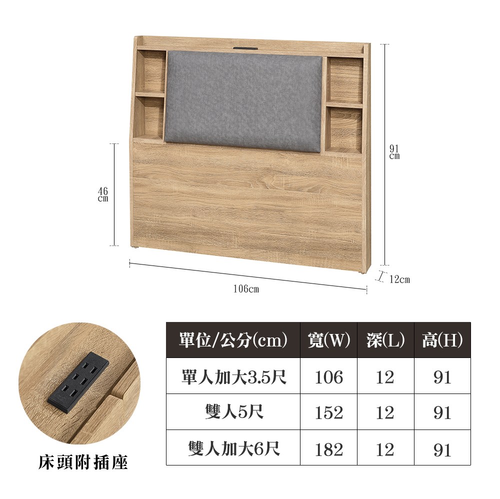 ASSARI-大和木芯板插座床頭片-雙人5尺