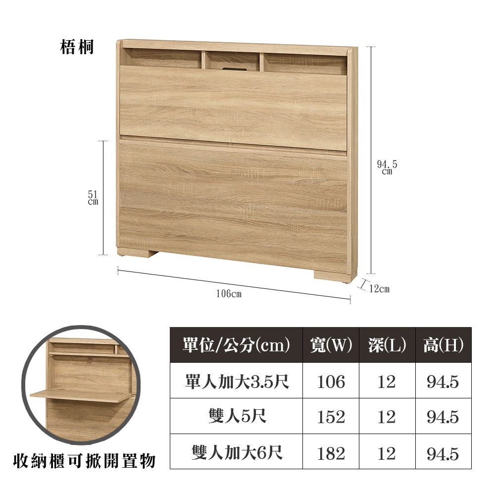 源氏木語西雅圖橡木原木色斜靠雙人5尺150x190夜燈低舖床架 Y90B28 (H014324397)
