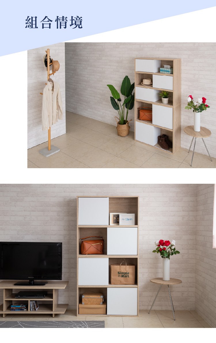 【TZUMii】夏爾四格滑門收納櫃/書櫃/置物櫃-2入組