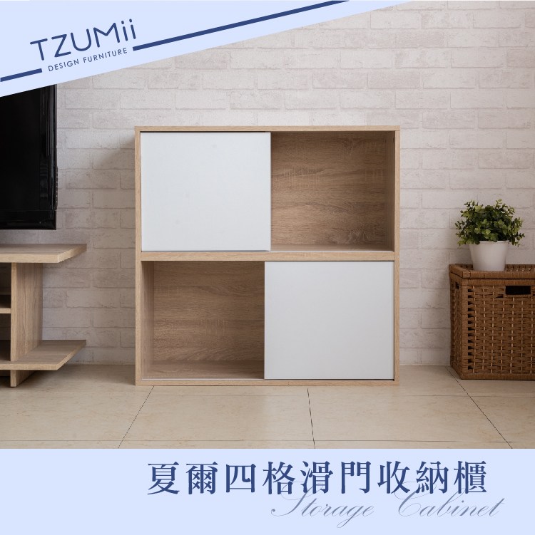 【TZUMii】夏爾四格滑門收納櫃/書櫃