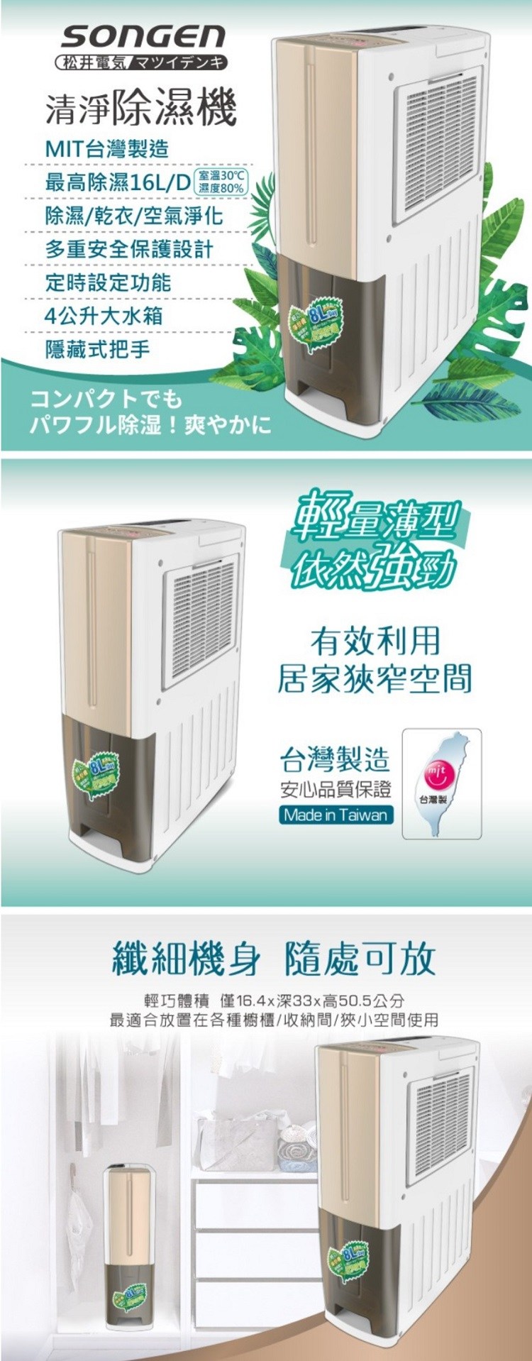 日本SONGEN松井 16L一機雙效清淨除濕機SG-108DHX
