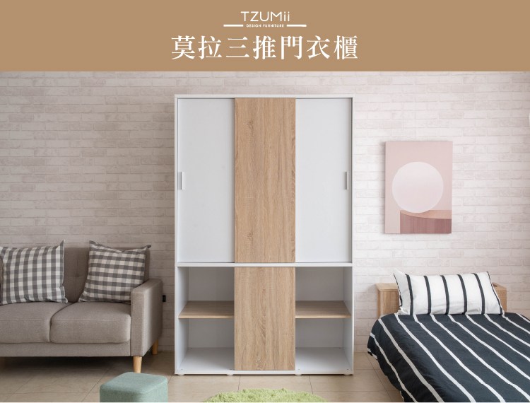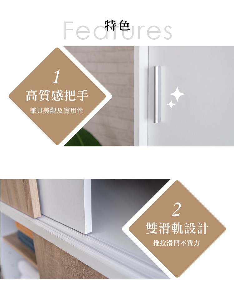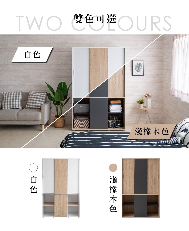 【綠家居】莫凡雙色2.6尺推門內雙吊衣櫃